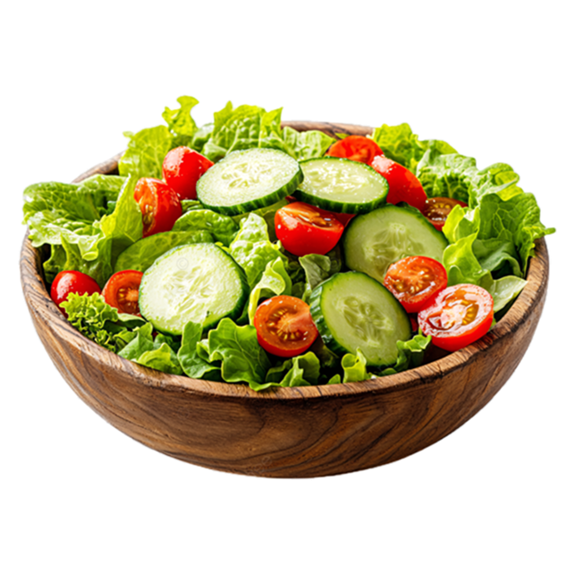 A refreshing blend of crisp lettuce, juicy tomatoes, cucumbers, onions, and fresh herbs, tossed together for a light and flavorful side.